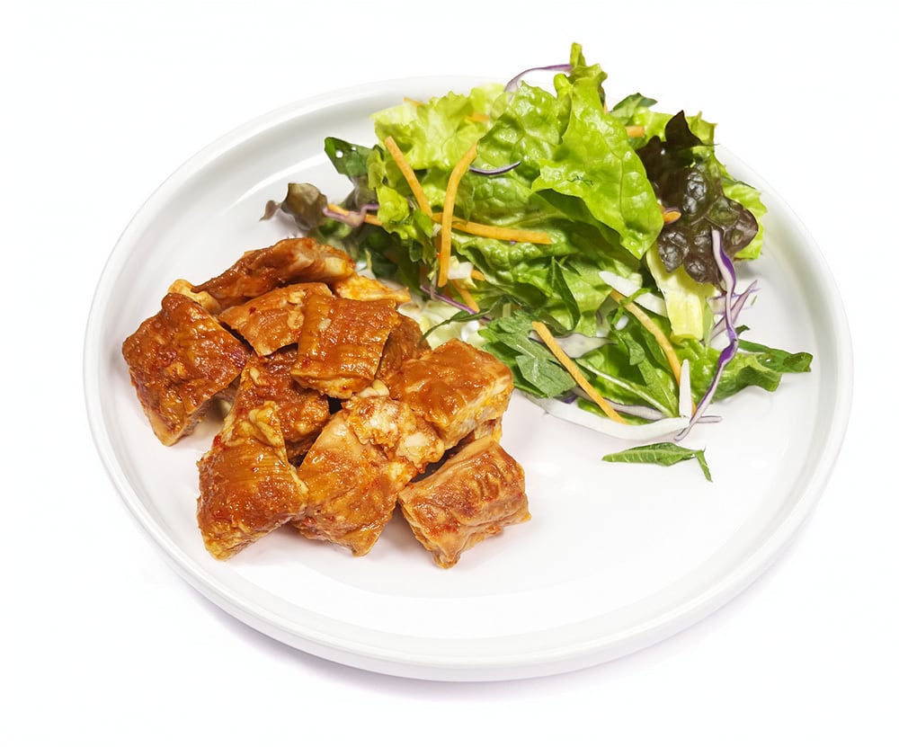 原材料 豚ホルモン,食塩、砂糖、醤油、味噌、にんにく、水飴、コチュジャン、植物油、唐辛子、豆板醤、XO醤、ごま、野菜エキス、ねぎ、酵母エキス、胡椒、寒天、発色剤(亜硝酸Na)、増粘剤(加工澱粉)、調味料(有機酸等)、酸化防止剤(V、C)